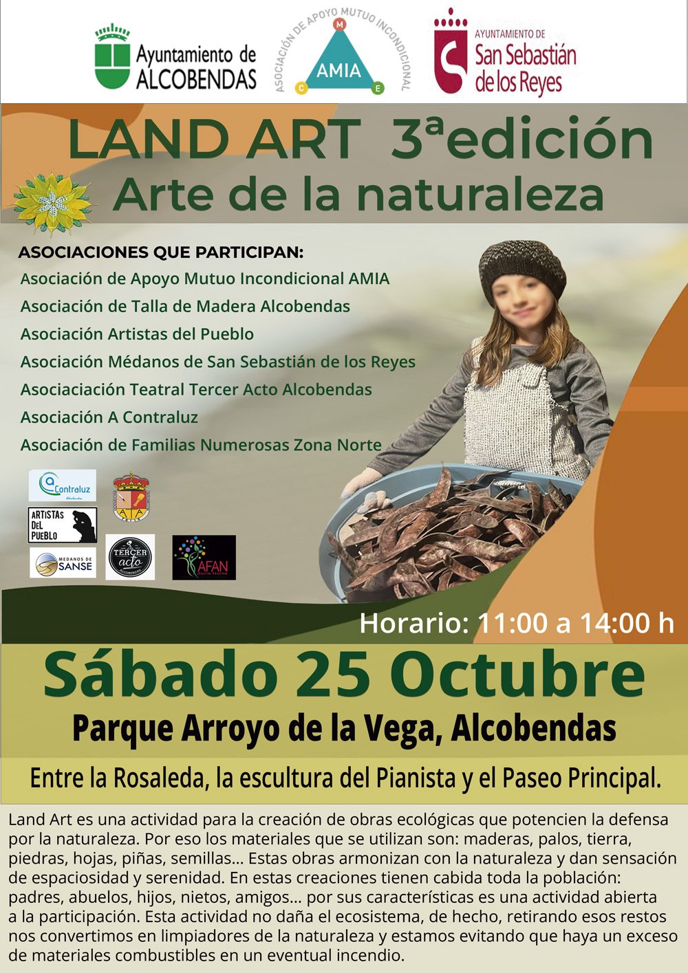 Land Art, “Arte en la Tierra”, es una forma de arte ambiental que une paisaje y creación. Se utilizan materiales naturales —palos, hojas, piedras, piñas, tierra…— para formar obras que dialogan con el entorno.